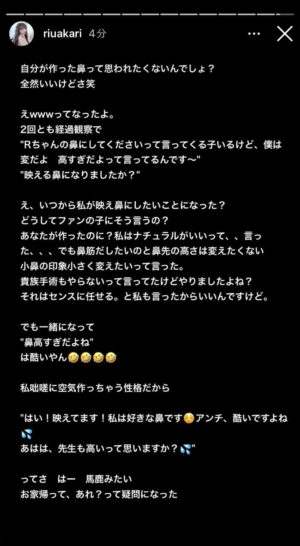 いかにもRちゃんの鼻自体が変って言い方はないよね。 自分が執刀医なんだからさ……。